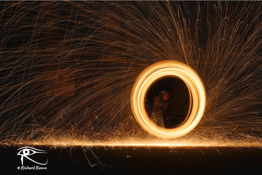 That being said, I looked to see if I had any pi-related imagery (or even pie-related, for comic effect) but as I didn’t I decided to use this one I took several years go which demonstrates the relationship between the radius of a circle and its circumference. If the length of the wire with the sparking basket is r then the circumference of the circle being traced is 2πr, although as you can see here it’s difficult to keep that thing spinning at a fixed distance from the camera!